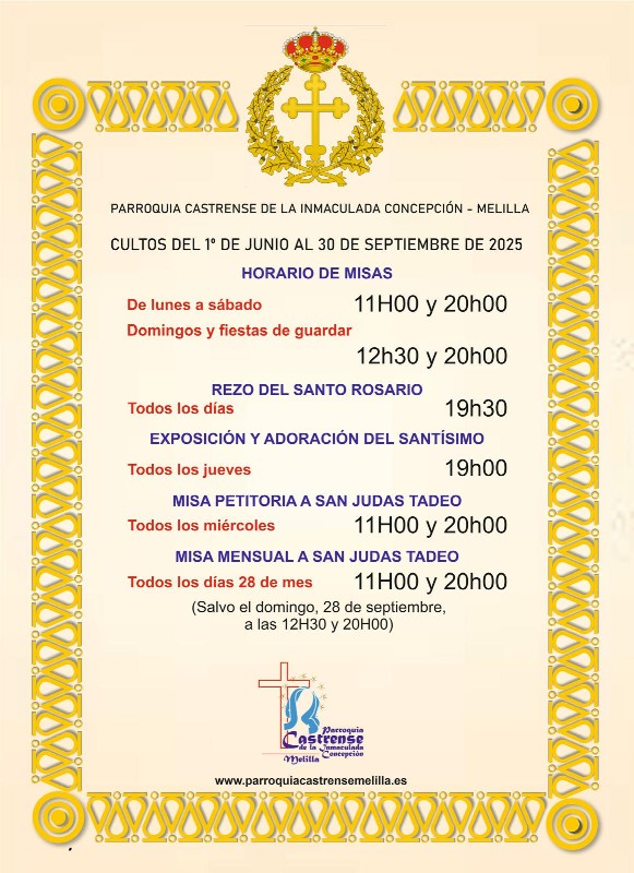 - Domingos y fiestas de guardar 11:00h, 12:30h y 19:30h